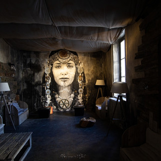 Dès notre entrée nous avons été plongé dans l'univers du « graf » avec « Dripping Point ». C'est la dernière installation de l’artiste tunisien SHOOF qui nous plonge dans un imaginaire absolu où le haut et le bas se fondent pour résoudre le conflit de l’irréel avec la matière.